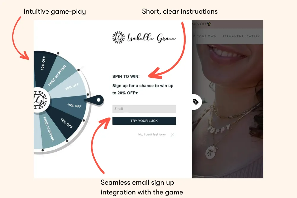 Mini interactive games where users tap or spin to reveal a surprise—but only after entering their email. Boosts fun and opt-in rates dramatically.